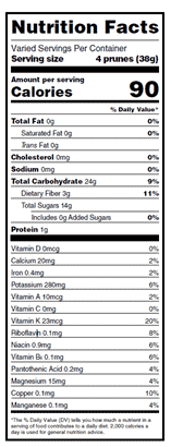 The serving size of prunes is roughly 4 to 6 prunes, or 38 to 40 grams. Relatively speaking, this small size packs a lot of nutrition in just 100-calories.11 Not only does this serving size provide over 11 vitamins and minerals but it also packs 11% of the daily value of fiber as well.11